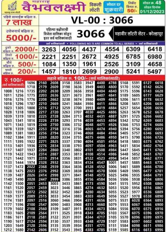 Maharashtra Vaibhav Laxmi Lottery Result Today Dec 1