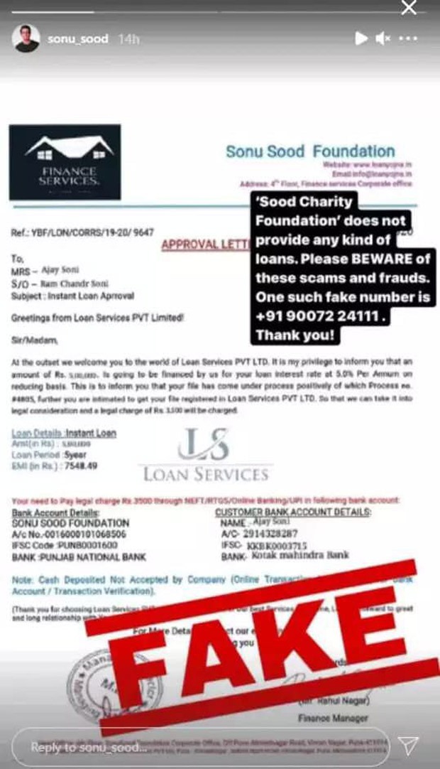 However, recently, Sonu Sood came across a fraudster who has been asking for a legal fee of Rs. 3500 under the pretense of providing loans with his foundation name. All set to file a case against this fraudster, Sonu Sood confirmed on his social media that the said person is not associated with his foundation and that they do not provide loans.