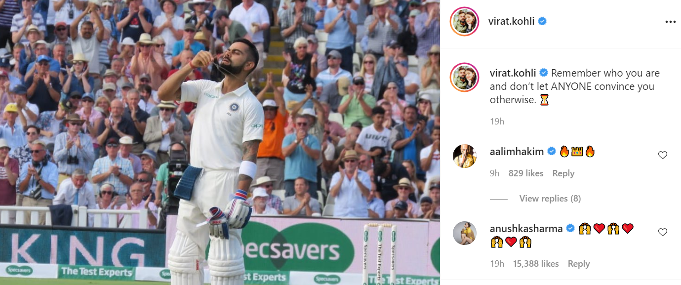 Virat Kohli’s motivational submit on Instagram acquired from his spouse Anushka Sharma.